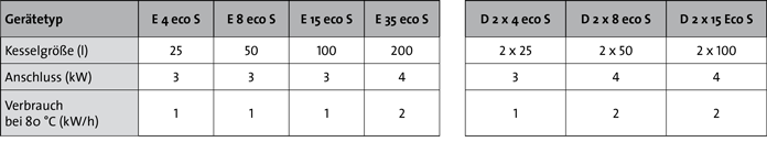 • Kesselgrößen E-Reihe: 25 l - 200 l